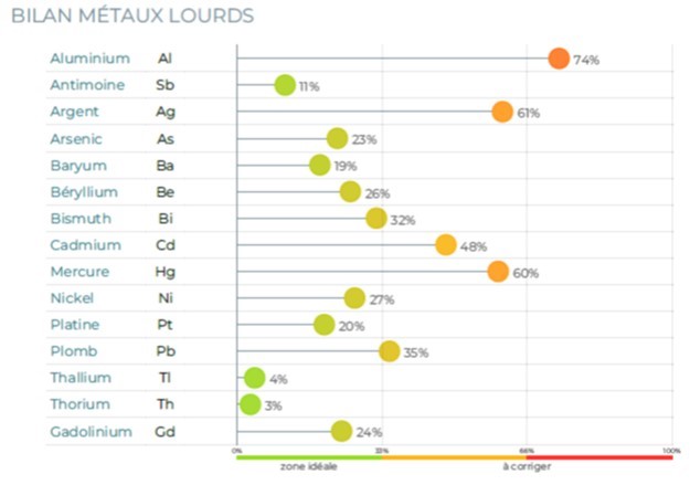 la biodisponibilité tissulaire en minéraux, Oligo-éléments, vitamines, stress oxydatif et la charge en métaux lourds.